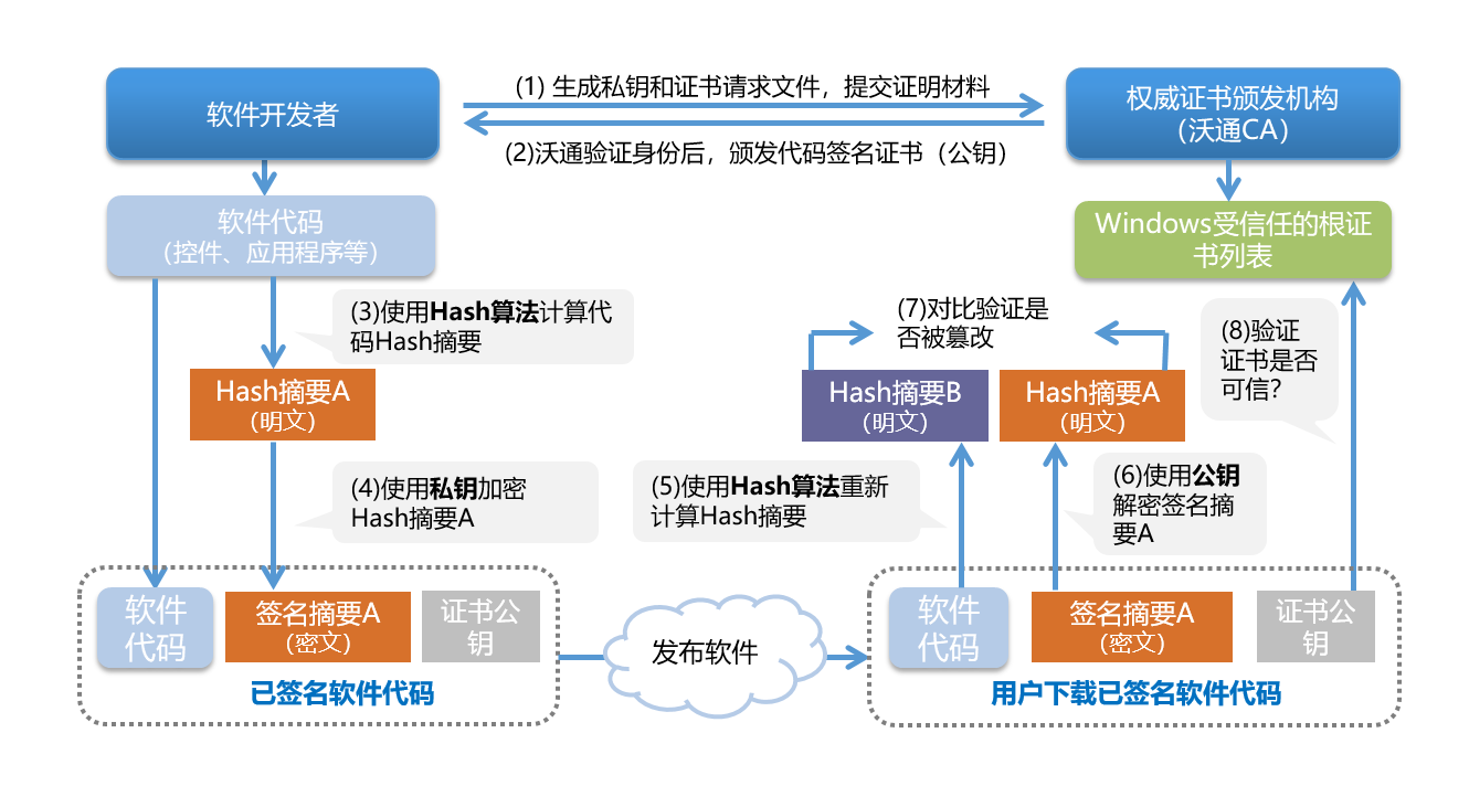 | ① Windows内核代码签名 | 可以让软件开发商使用此签名证书在证书有效期内不限数量的对Windows内核代码.sys, .cat 及.exe、.dll、.class、.cab和.ocx (ActiveX) 等文件进行数字签名。 |