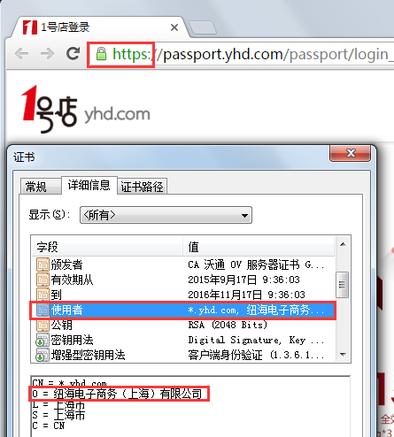 The authentic Yihaodian website, checking the company’s name