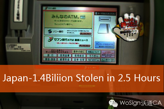 2016-05-26Reported by foreign media, some international criminal gang has drawn 1.44 billion Yan (13 million US dollars) from 1400 ATM in convenience stores all around Japan using faked credit cards on May 15th. The whole process only took two and a half hours.