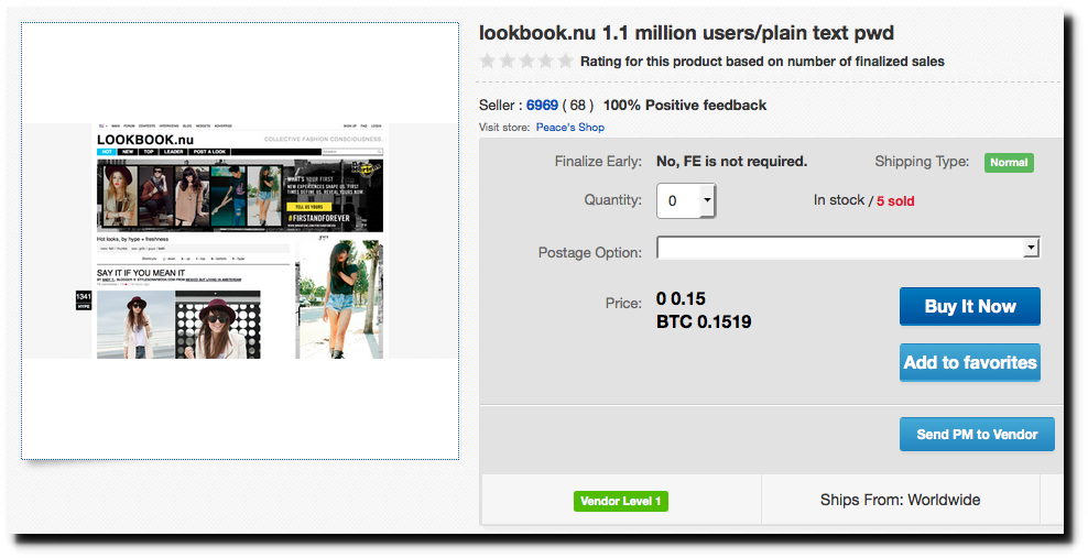 The screenshot above shows the data of Lookbook.com are being sold on Deep Web.