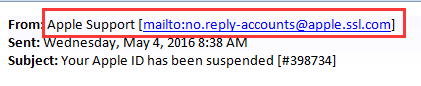 In the case of this article, the sender is Apple Support. However, you will find it a fake Apple domain if you carefully check the sender’s address. The top domain of it is ssl.com rather than apple.com. It is not so easy for users to distinguish between the true and the false when the order of the domain is switched.