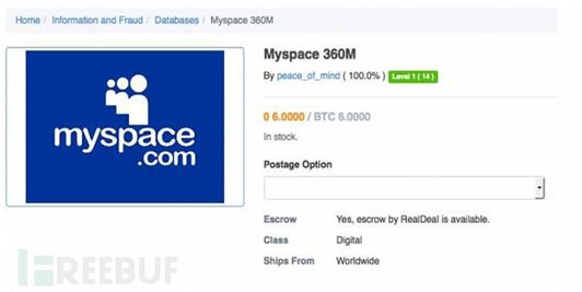 Last Friday Afternoon, a hacker claimed to be Peace wanted to sell data of stolen passwords and accounts from MySpace in the online black market The Real Deal at the price of 6 bitcoin (about 2800 dollars).