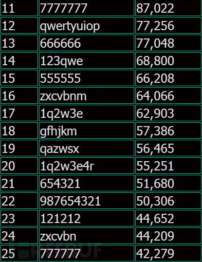 The most frequent passwords of VK.com users