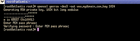 openssl genrsa –des3 –out www.mydomain.com.key 1024