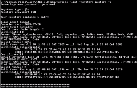 keytool –list -keystore [keystore_name] -v
