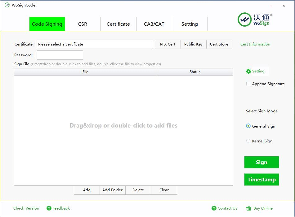 home>Support>WoSignCode.exe(Code Signing Tool)