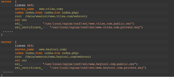 这样就可以在同一个IP上配置多个HTTPS主机了。实例如下: