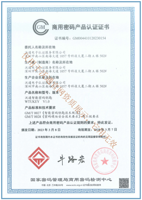 沃通智能密码钥匙(WTUKey)