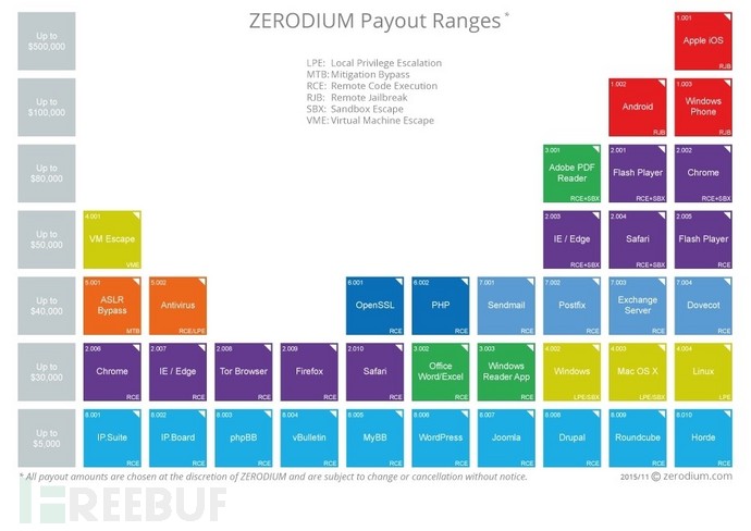 Zerodium2015年报价