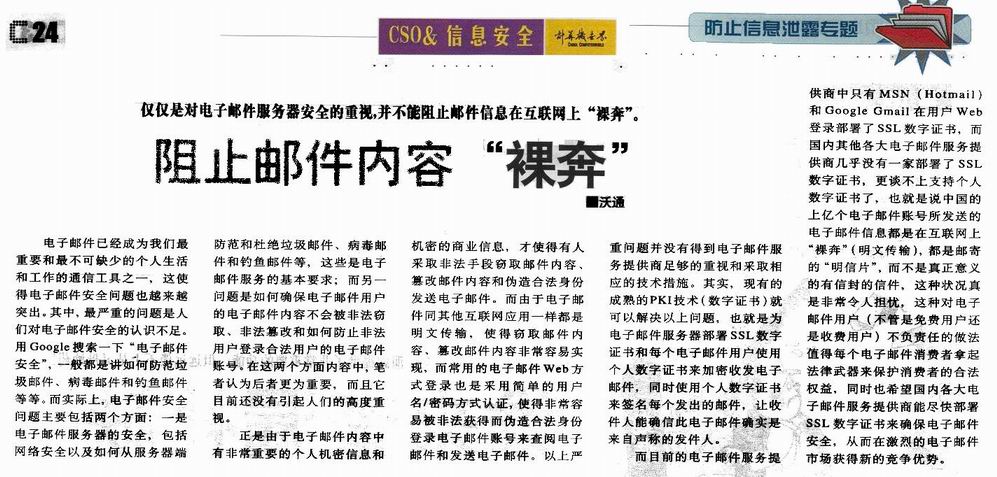 《计算机世界》文章 - 《阻止邮件内容“裸奔”》