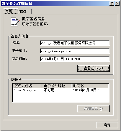 | 颁发根证书 | Certum Trusted Network CA-- WoSign Code Signing CA |