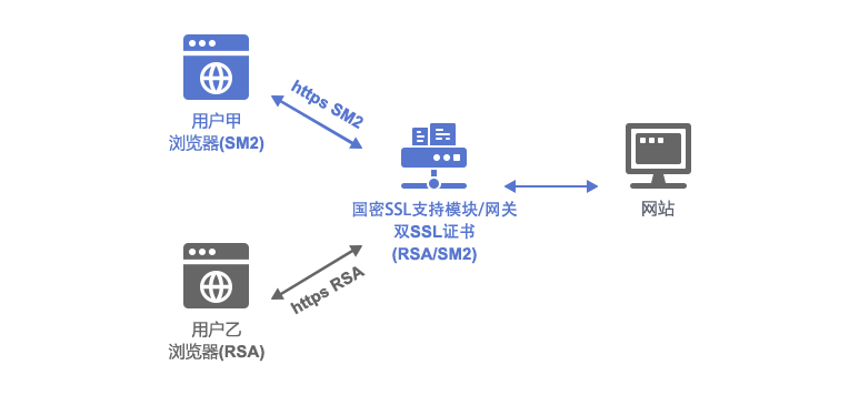 | 浏览器兼容 | 兼容所有浏览器,部署双证书(SM2 SSL证书和RSA SSL证书) | |