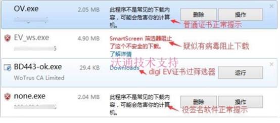 以下是采购了Wotrus EV 最高级别的代码签名证书后在浏览器中下载后的对比实例: