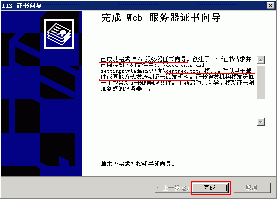 10. 完成生成私钥和CSR文件 Finish and exit the IIS Certificate Wizard