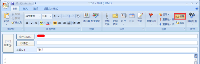 b) 点击上面的“邮件-选项-加密”按钮,如图所示。
