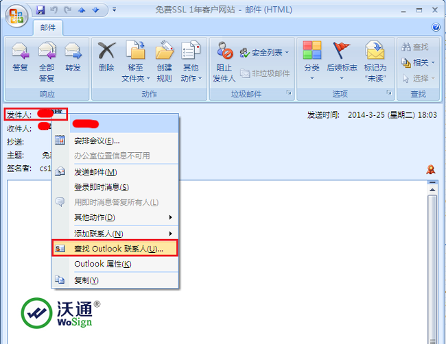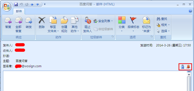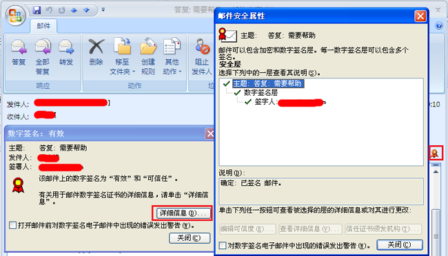 3.使用 Outlook 2007查看经过数字签名的邮件