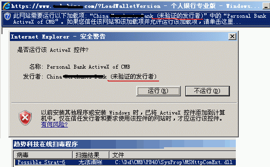 请注意:不能仅签名CAB文件,CAB包中所有DLL文件都要先签名后再打包,再签名CAB文件,否则IE浏览器会显示为“未验证的发行者”而影响正常使用,甚至杀毒软件会认为是毒而被删除!如下图所示的实际案例: