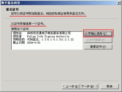 请注意:如果您使用WoSign微软代码签名证书的PFX格式证书签名的电脑不是申请证书时的同一台电脑,则请确保您的电脑上一定已经安装了颁发 WoSign 代码签名证书的中级根证书: WoSign Class 3 Code Signing CA 和 交叉签名根证书(会在申请证书的电脑上自动安装,此中级根证书和交叉签名根证书只是要求签名操作电脑上有就可以了,并不要求最终用户电脑上有,请不要搞混淆!)。