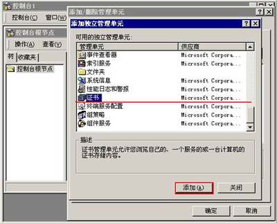 3. 点击“添加”后出现以下界面,往下找选中“证书” (图 3):