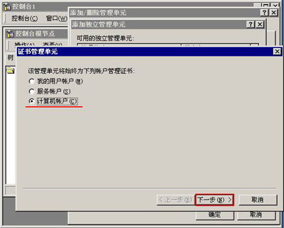 4. 点击“添加”后出现以下界面,选择“计算机帐户”后点击“下一步” (图 4):