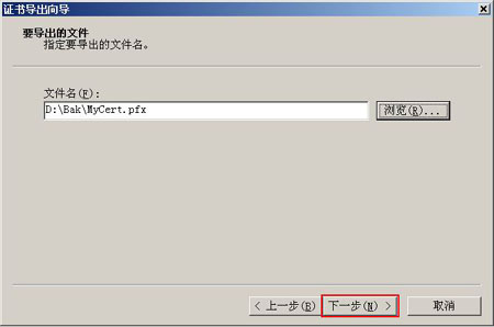 9. 请按照下图的红框指示,点击“下一步”按钮,导出您的数字证书备份 (图 11):