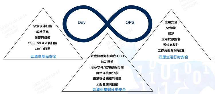 为了解决云原生应用的基础设施和全生命周期过程中的风险,出现了CWPP、CSPM等云原生安全工具或者产品,但是这些工具或者产品只是为了解决单一的安全问题,也只聚焦在生命周期的某个阶段。DevOps改变了传统应用的开发模式,将开发和运维过程连接起来,保持云原生应用从开发到运维的一致性,并强调可观测性,如果安全的运营流程不能打通应用开发到运维的过程,会导致没有办法观察应用全生命周期安全风险,也没有办法制定覆盖从开发和运行时的一致安全策略,给云原生应用的安全运营过程造成巨大困扰。