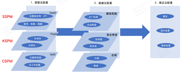 CNAPP的配置管理模块用于解决云原生应用整个运行环境的配置安全,包括云平台、容器编排平台、主机以及容器等工作负载,它通过从CSPM、KSPM以及CWPP产品中采集配置数据并进行集中分析,按照优先级给出配置风险和修复建议,并且在应用整个生命周期中持续进行监控,保证应用全生命周期配置安全。