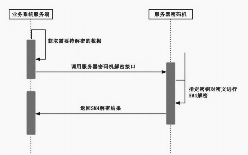(5)调用服务器密码机解密接口,指定密钥对密文进行SM4解密。