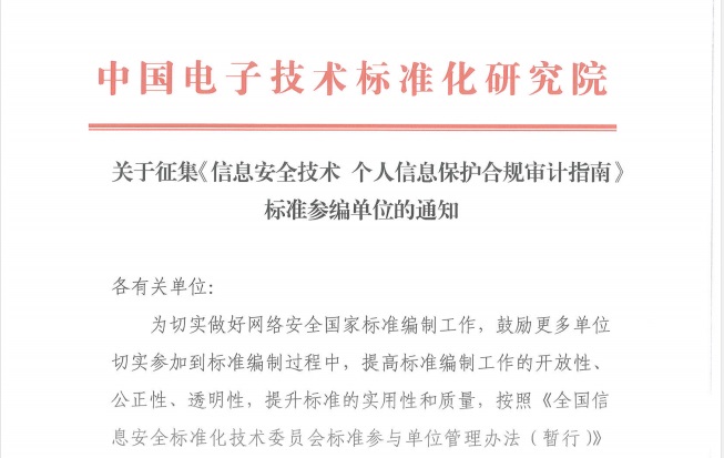 关于征集《信息安全技术 个人信息保护合规审计指南》标准参编单位的通知