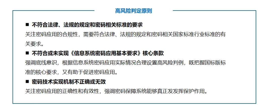 由中国密码学会密评联委会修订形成,2021年12月发布的版本《信息系统密码应用高风险判定指引》。该指引文件旨在 …