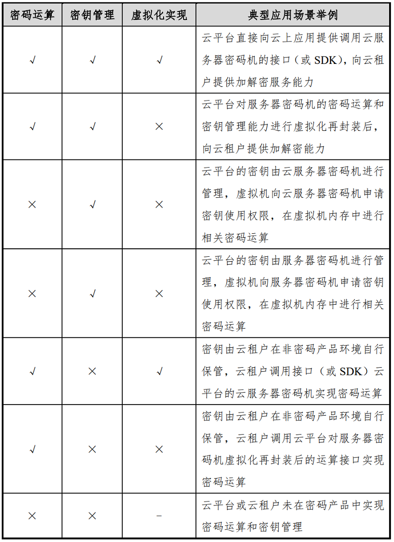 1)直接由密码产品提供密码服务支撑,如IaaS云平台直接调用云服务器密码机或物理VPN向云上应用提供密码服务;