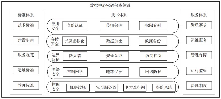 数据中心密码保障体系包含标准体系、技术体系、服务体系 3 个方面。