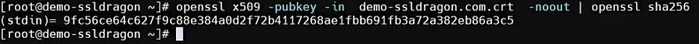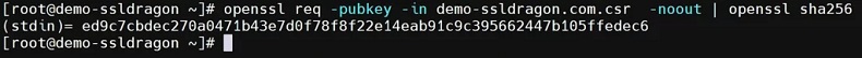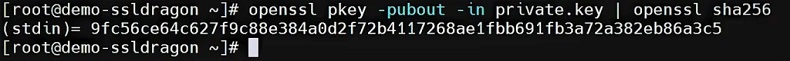 要验证公钥和私钥是否匹配,您需要从每个文件中提取公钥并为其生成哈希输出。所有三个文件应共享相同的公钥和相同的哈希值。以下是使用 OpenSSL 检查证书和密钥详细信息的方法。以下命令生成每个文件公钥的哈希值: