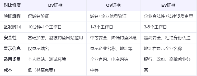 当用户在浏览器地址栏看到“HTTPS”和一把绿色小锁时,往往会对网站产生信任感。然而,SSL证书并非“一刀切”,其类型多样,安全性也存在显著差异。其中,DV SSL证书(域名验证型)因其申请便捷、成本低廉而广受欢迎,但其安全性是否足够?它与OV SSL证书(组织验证型)和EV SSL证书(扩展验证型)相比又有哪些优劣势?