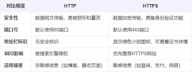 以下是HTTP和HTTPS的对比,帮助您快速理解两者的区别: